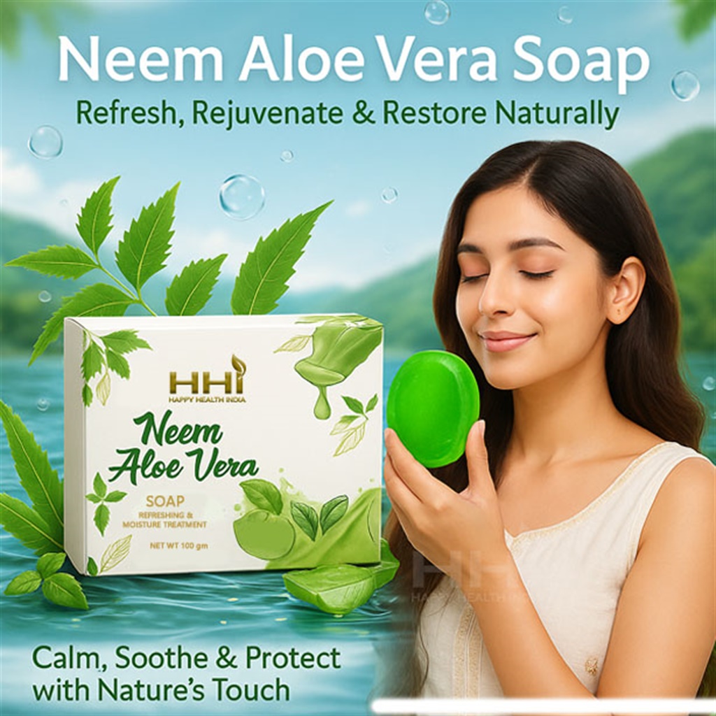 HHI Neem Aloe Vera Soap is formulated with herbal ingredients known for their traditional skincare benefits. Enriched with Neem and Aloe Vera extracts, it helps cleanse the skin while supporting natural freshness and moisture balance. The gentle formulation leaves the skin feeling clean, smooth, and refreshed after every bath, making it suitable for daily personal care.